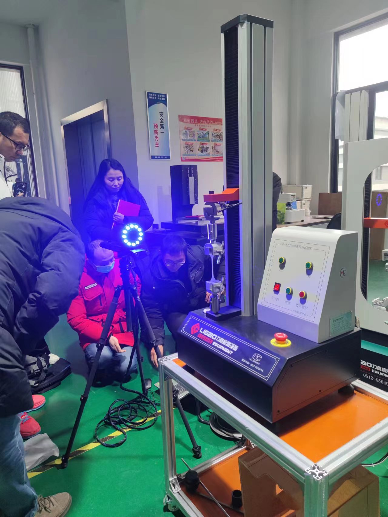 現場展示視頻引伸計的操作流程,我們銷售及技術團隊在認真觀摩學習。