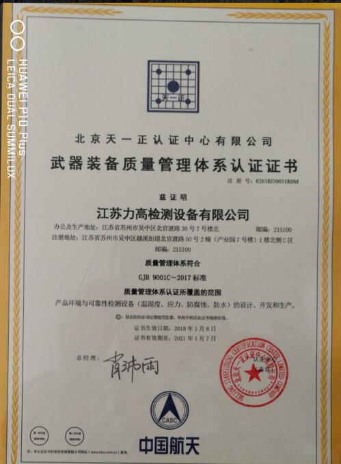 去年年底北京天一正認證中心審核組對公司國軍標質量管理體系進行通過認證后次監督審核。
