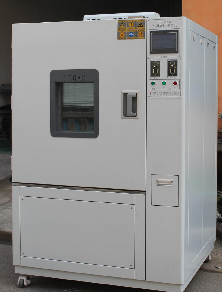 臭氧在大氣中的含量很少卻是橡膠龜裂的主要因素,臭氧老化箱模擬和強化大氣中的臭氧條件,研究臭氧對橡膠的作用規律,快速鑒定和評價橡膠抗臭氧老化性能與抗臭氧劑防護效能的方法,進而采取有效的防老化措施,以提高橡膠制品的使用壽命,參照標準:GB/T7762-2003、GB/T2951.21-2008